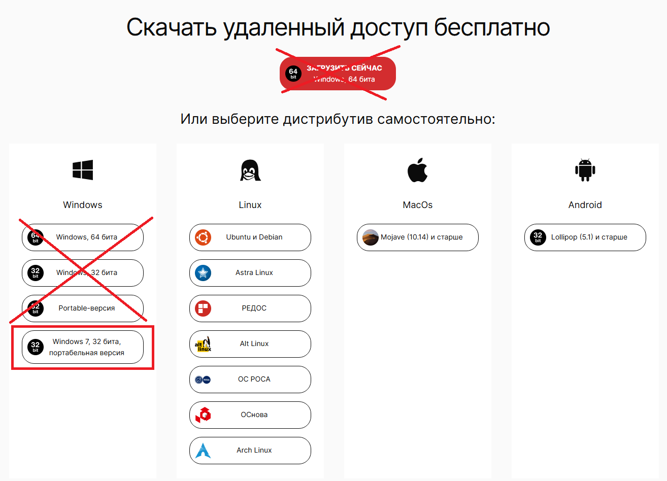 ОБЯЗАТЕЛЬНО: Выберите версию "Windows 7, 32 бита, портабельная версия