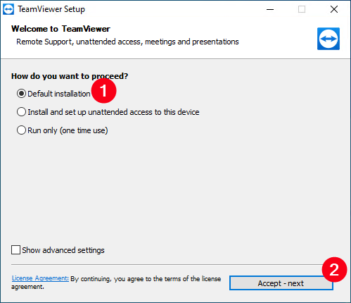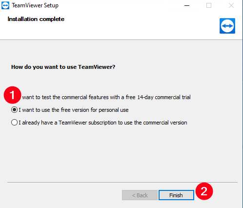 Откроется окно с программой (если программа не запустилась, нажмите на ярлык TeamViewer на рабочем столе), скопируйте и отправьте ваши ID (1) и пароль (2) сотруднику технической поддержки.