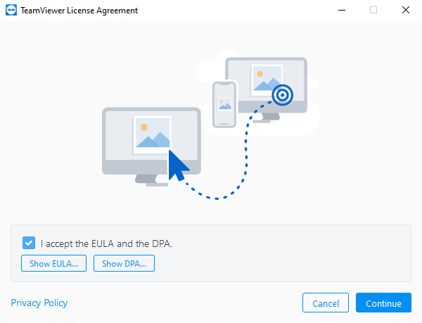 Примите условия лицензионного соглашения и нажмите "Продолжить" (Continue).